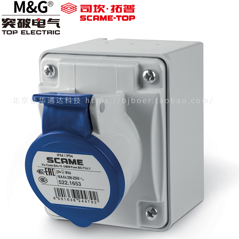 Breakthrough Scantop IP44 aviation plug 16a surface mounted straight socket 3 for plug connector 522 1653