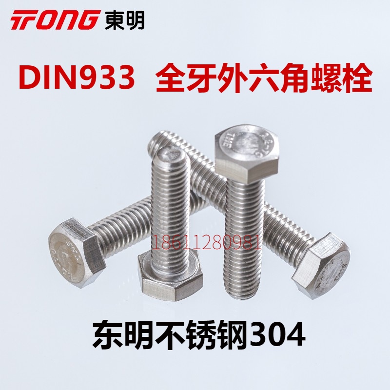 304 stainless steel THE Dongming full tooth Outer hexagonal screw DIN933 Outer hexagonal bolt screws m6 * 30m6 * 50