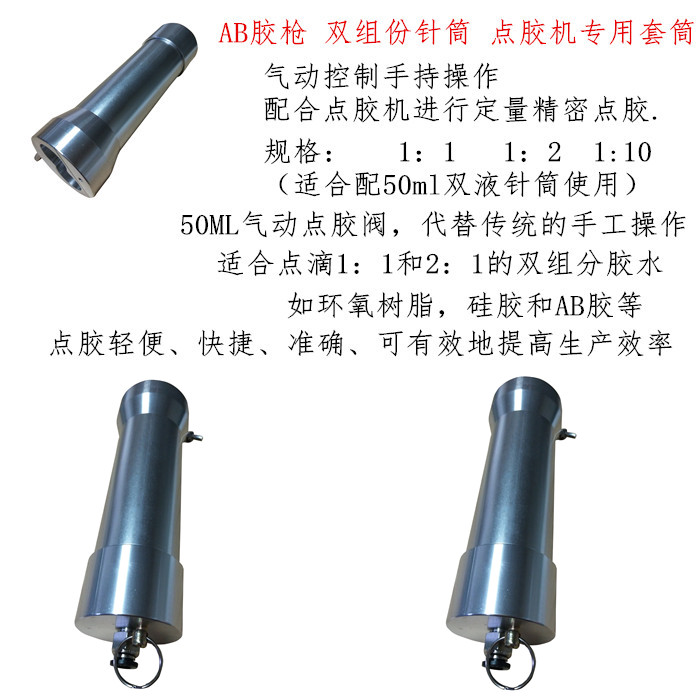 Dispensing machine AB dispensing valve Pneumatic double liquid 50ML aluminum alloy flashlight type AB glue gun booster AB glue cylinder