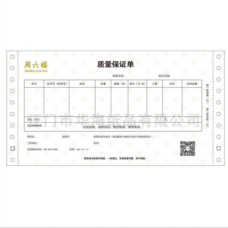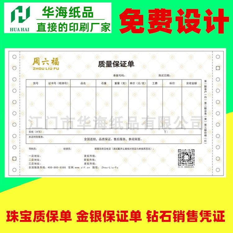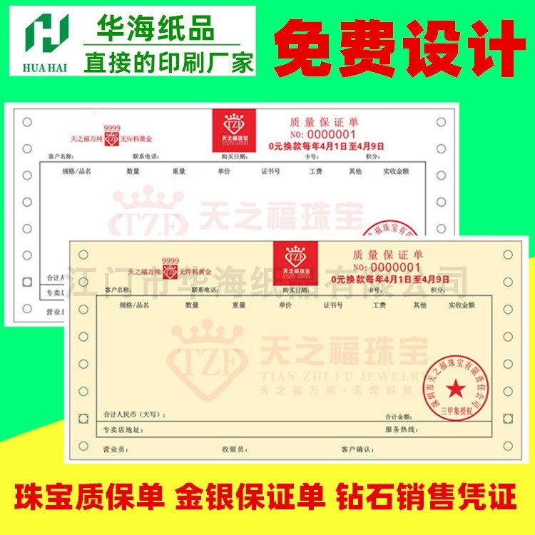 Jewelry Single Printed Jewelry Guaranteed Single Triplex Sales Warrant Single Sale Elemental Policy Bill Shipped Jiangsu-Taobao