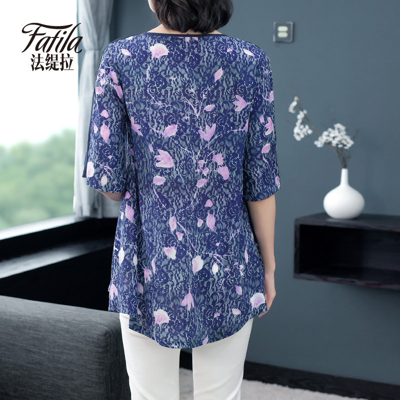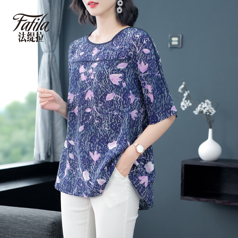 2020 new spring and summer heavy pound genuine silk blouse women's medium long version of mulberry silk blouse crushed floral mama knitwear