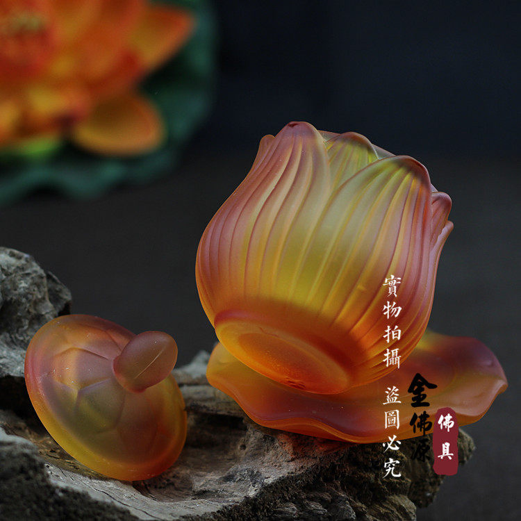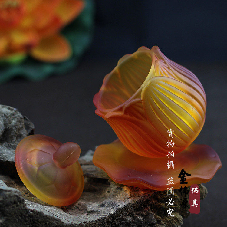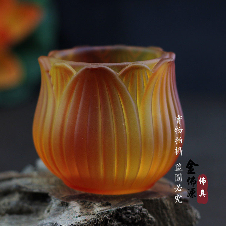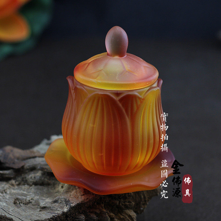 Seven Treasures Imitation Glazed Water Supply Cup For The Buddha Holy Water Cup Clear Water Cup Lotus Flower For Cup Great Tragicure Water Tribute Cup Buddha Supplies