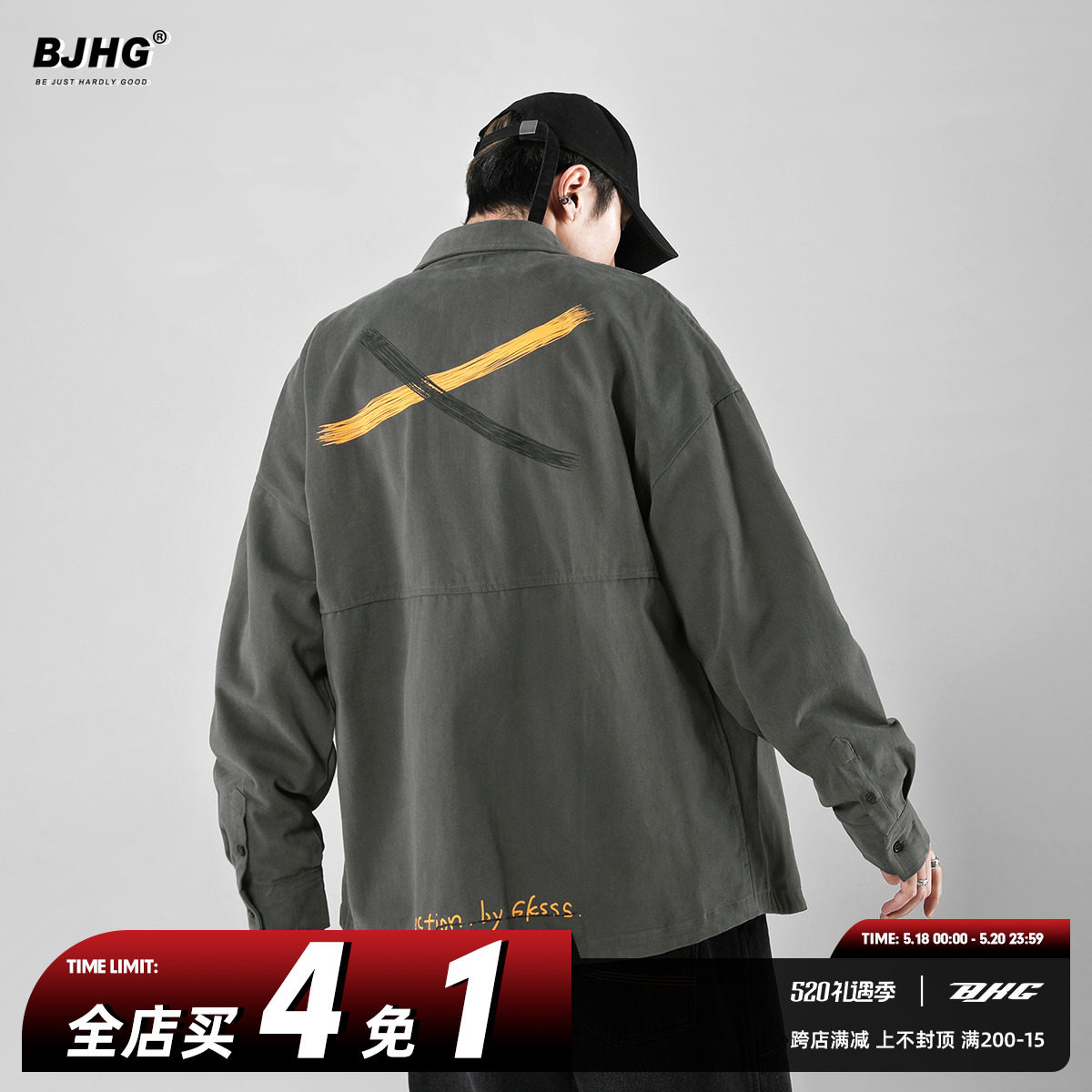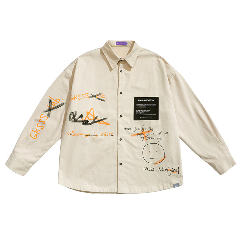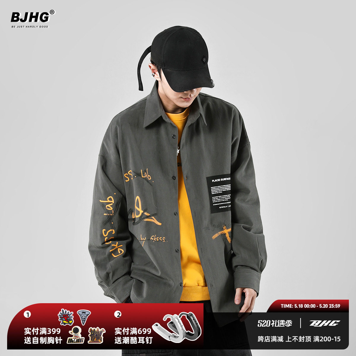 Spring graffiti tooling lining clothes Men's new day series Tide Cards Original Accommodation Loose CHIC Hip Hop Casual Couple Shirt Jacket