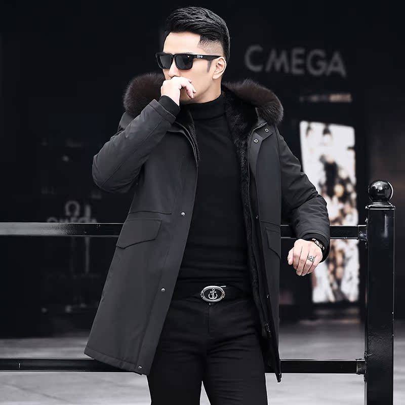Haining Pai overcome men's medium and long version of mink fur coat whole mink fur all-in-one mink inner bile fur ni overcome jacket