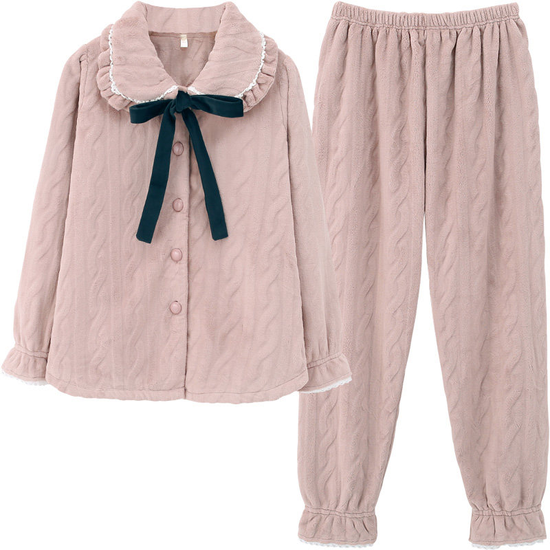 Pajamas women's autumn and winter coral velvet thickened velvet sweet and cute flannel winter hairy home suit set