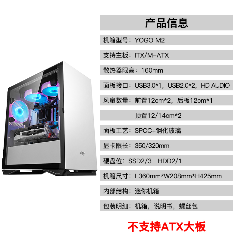 Patriots YOGO M2 Host Shell Side Transparent Full-Through Diy Games Water Cooling Matx Main Table Computer Computer Small Open Housing Powder White Compact Mini Itx Radiator Empty Box M