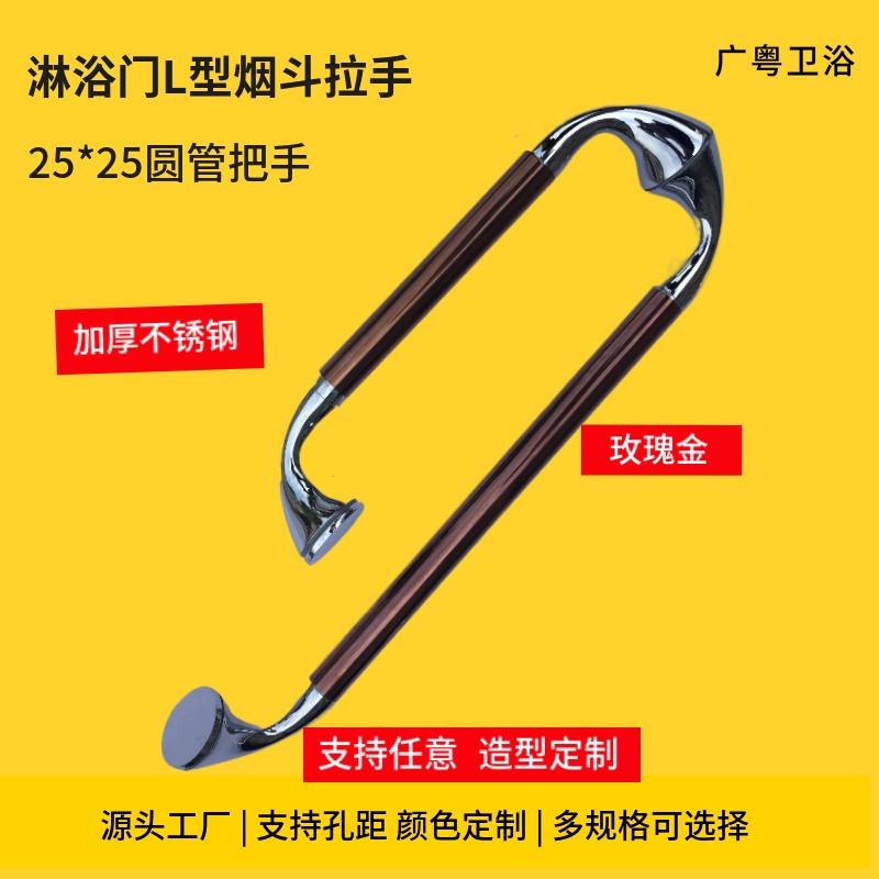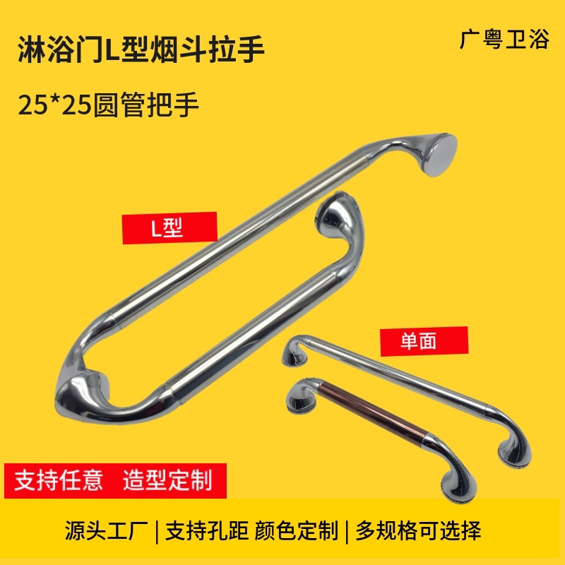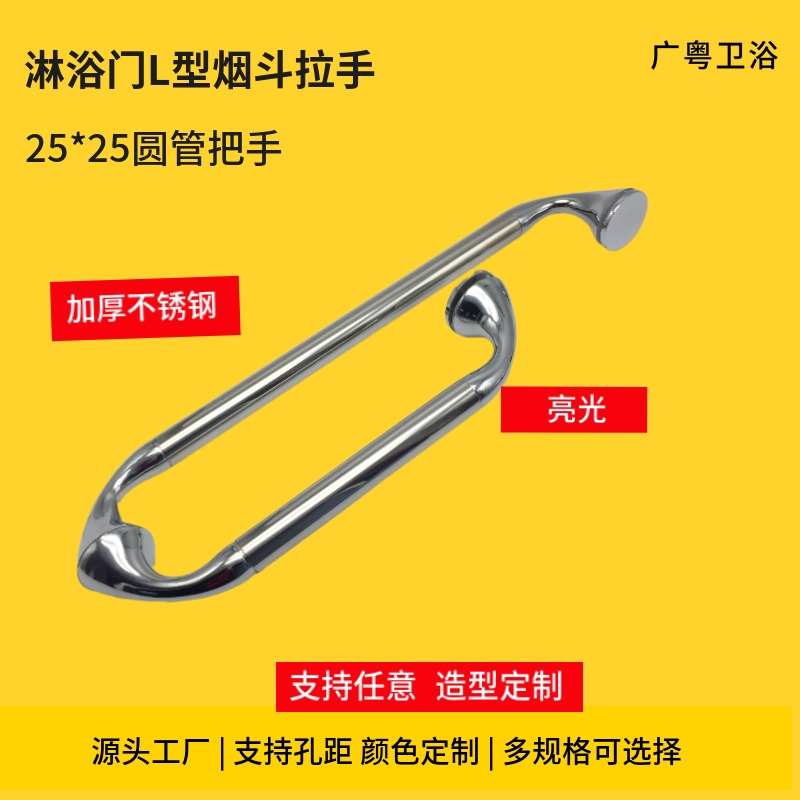 Shower room glass door push-and-pull handle bathroom moving door handle cigarette butt L-shape armrest hole distance 300mm450m