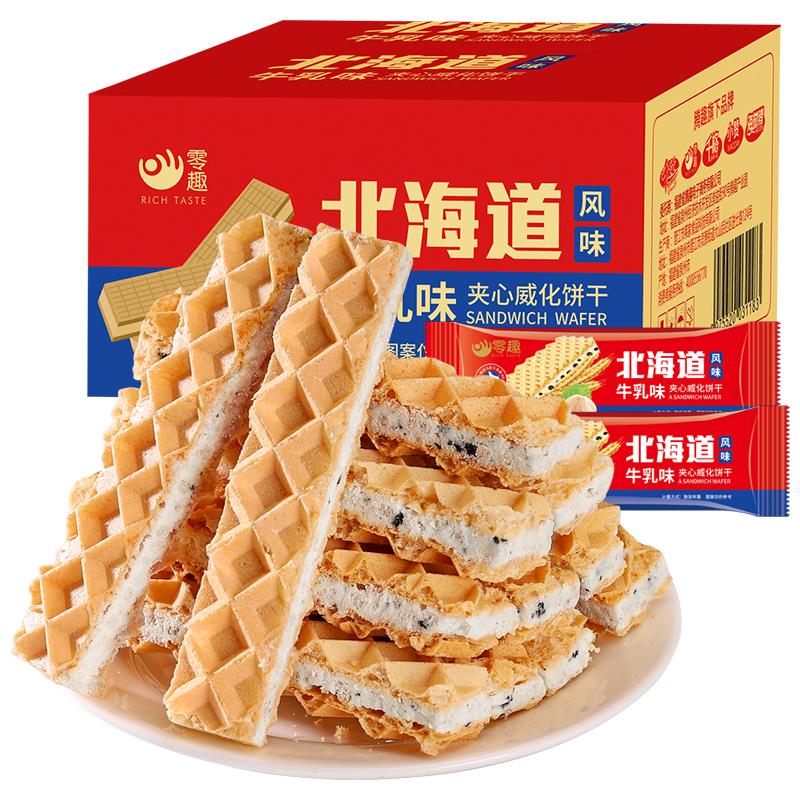 Zero fun Hokkaido flavor milk flavor sandwich wafer biscuits full box breakfast casual snack zero food to relieve greedy T