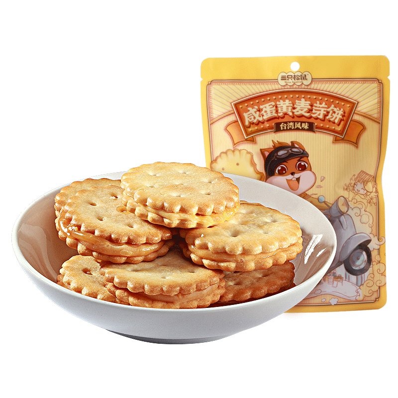 (Three Squirrels_salted egg yolk malt cake 108gx2 bag) Net red desktop flavor sandwich biscuits