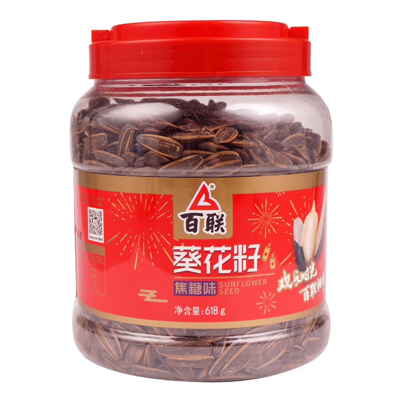 Fujian Baijian sunflower sunflower grain 618g canned sunflower bucket snack food