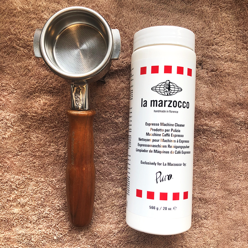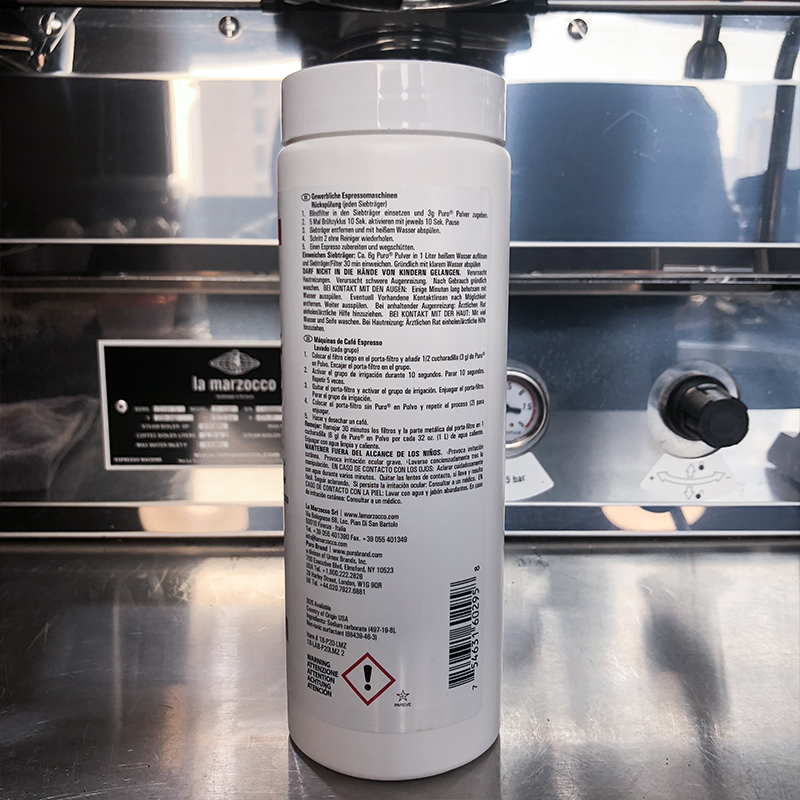 lamarzocco coffee machine Urnex Puro cleaning the medicinal powder