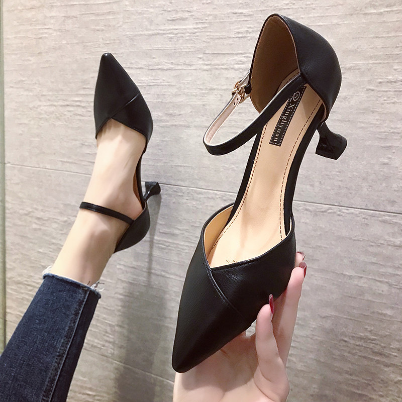 Black Single Shoes New Korean version Baotou Women's shoes 100 Lapped Slim Fit Dresses Sandals Hollow Bridesmaid Shoes High Heel Shoes