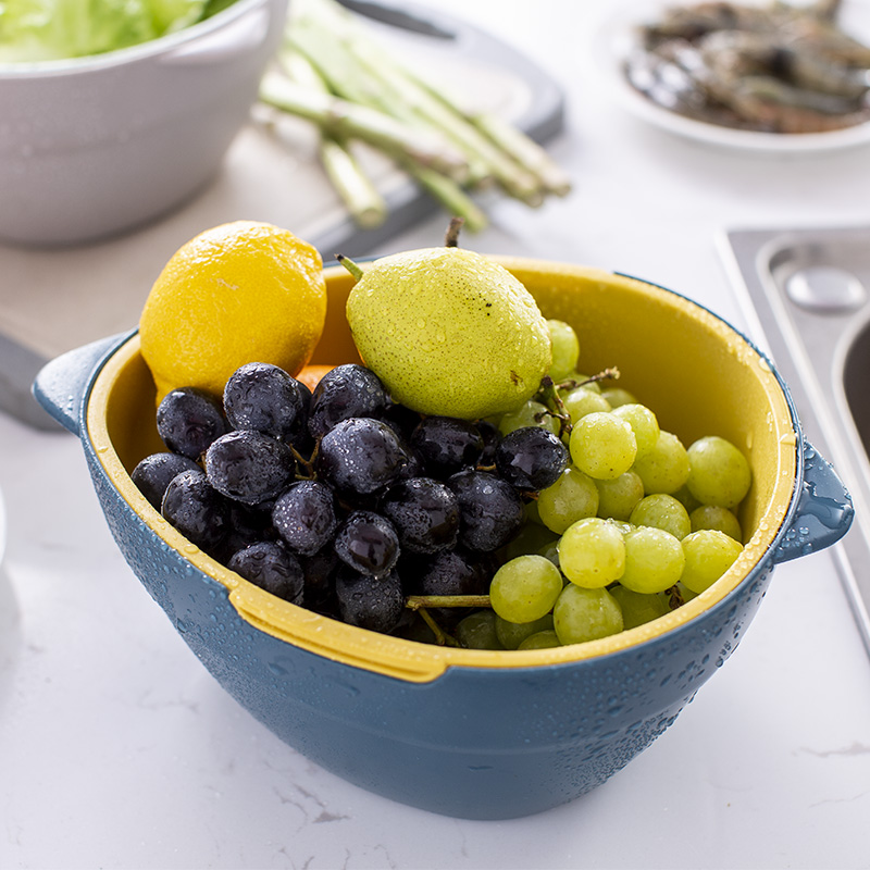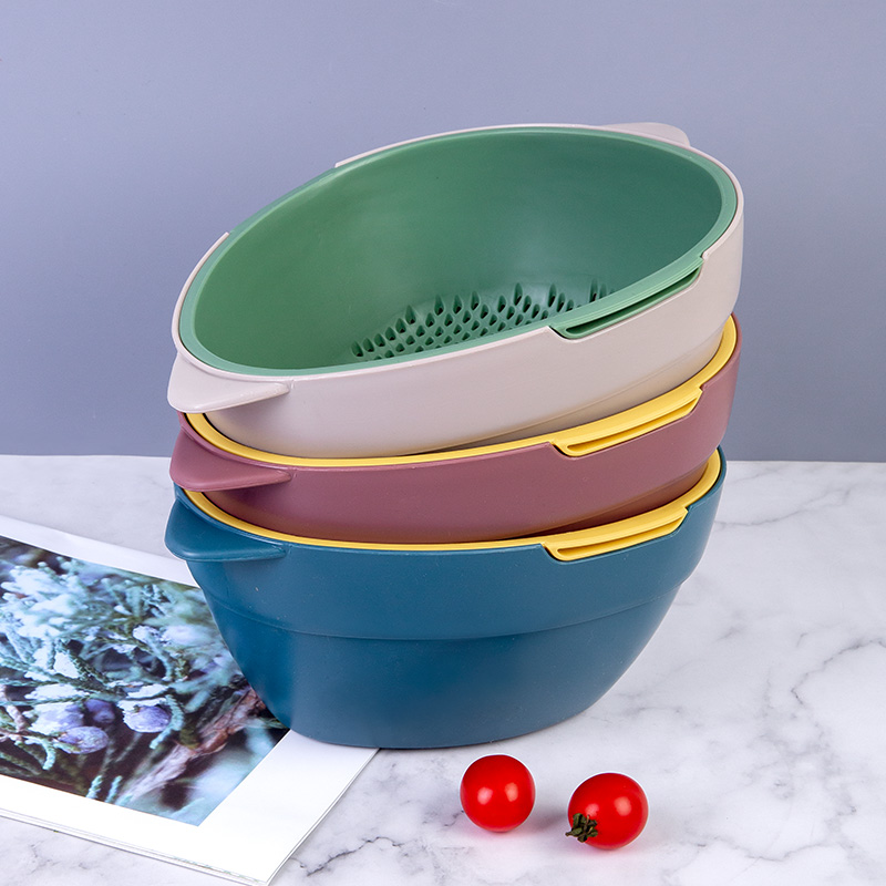 Jeetee Double Layer Plastic Drain Basket Kitchen Wash Vegetable Basket Naughty Basket Fruit Basin Fruit Pan Containing Basket Wash Basin