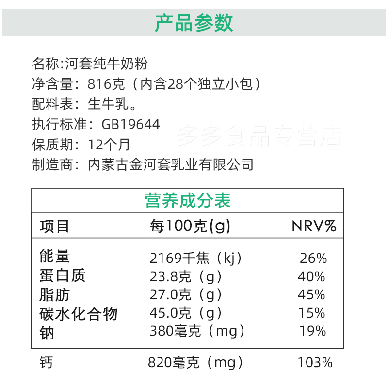 Hetao 816g pure milk powder × 1 bag set meal Hetao 816g pure milk powder × 2 bag set meal