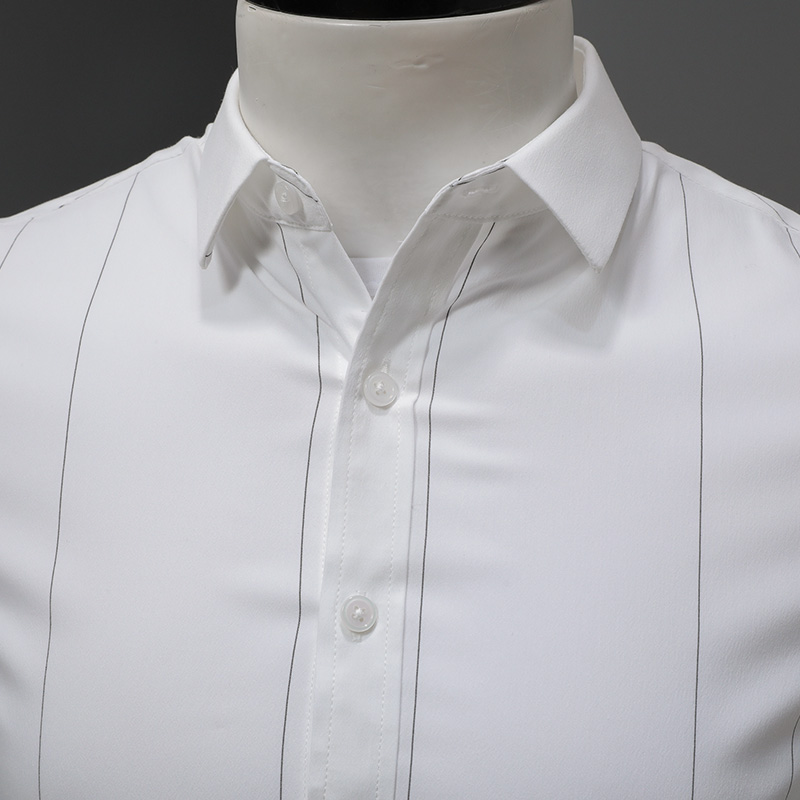 Long-sleeved shirt men's quality summer new youth striped white shirt Korean version of the trend slim ruffian handsome inch clothes