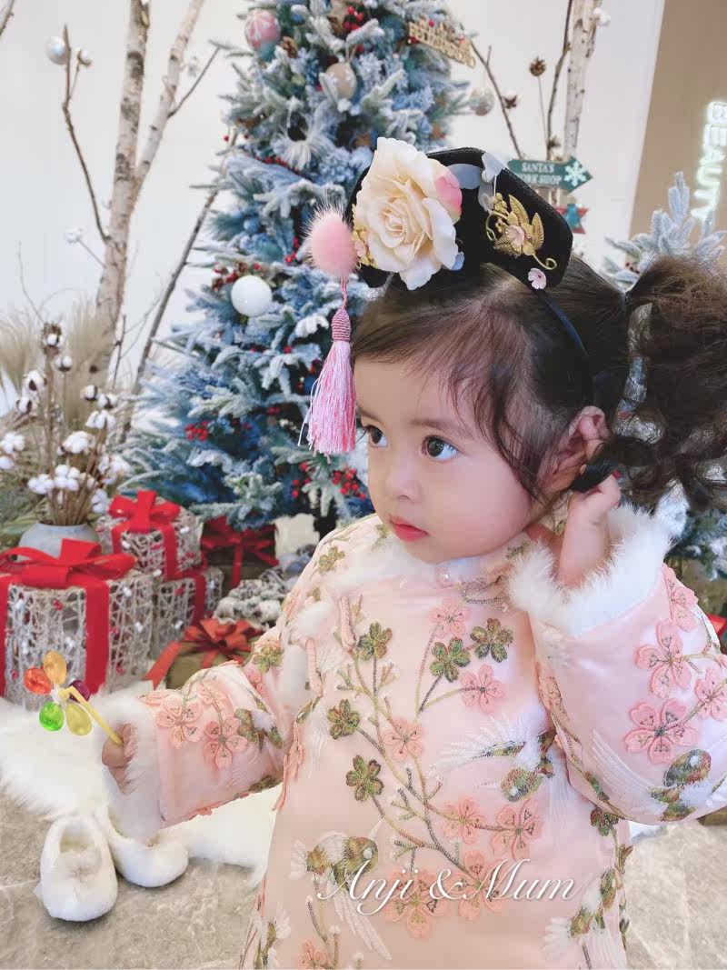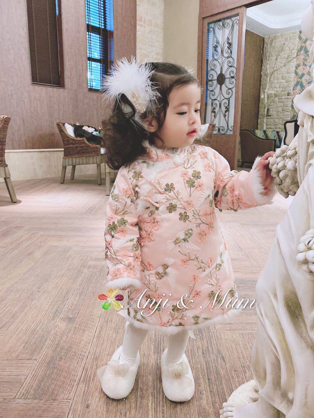 Known as an original bird-language flower-scened children's dress cheongsam