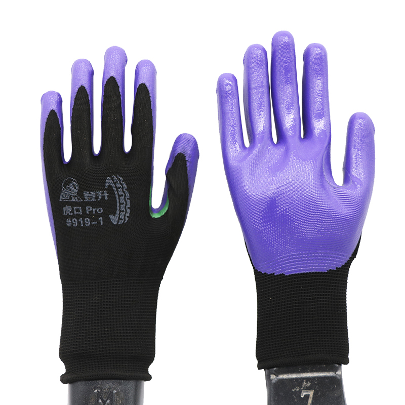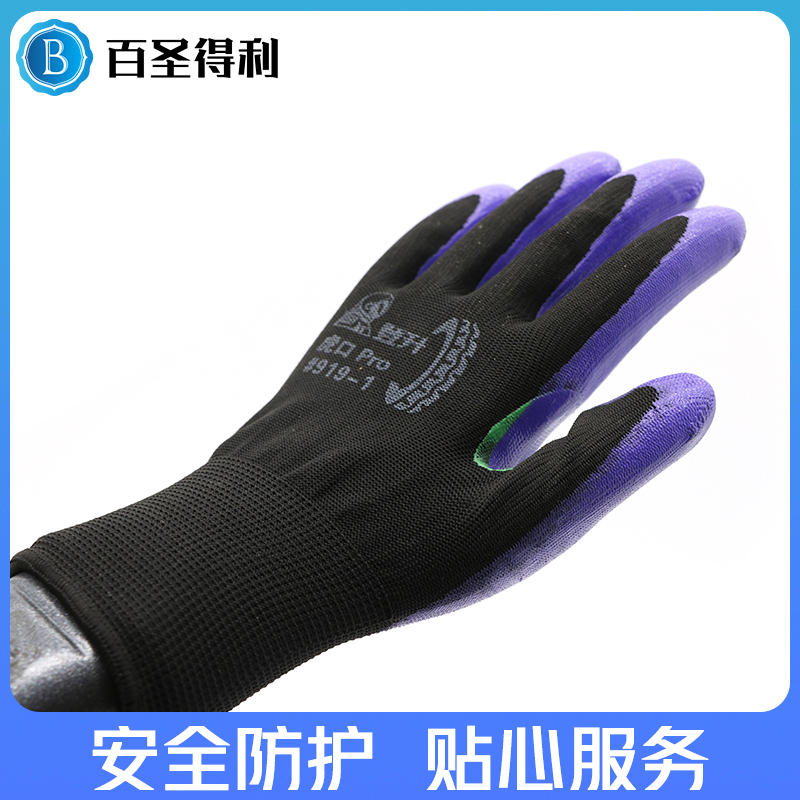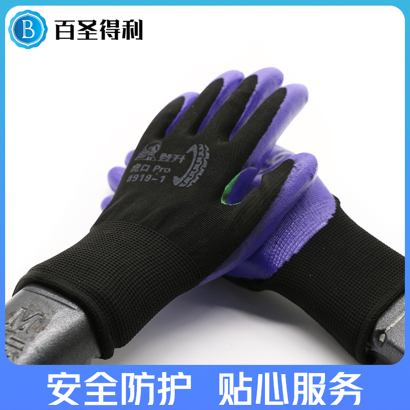 Dengsheng 919 Hukou reinforced Pro nitrile dipped protective gloves oil-resistant wear-resistant non-slip breathable labor insurance gloves