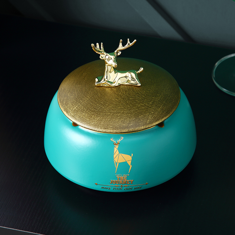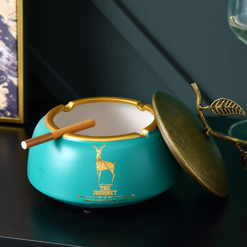 Tobacco Ashtray Home Living Room Creativity With Lid Ceramic Tobacco Cylinders Ins Windproof Anti-Fly Ash Upscale Tea Table Decoration Hem