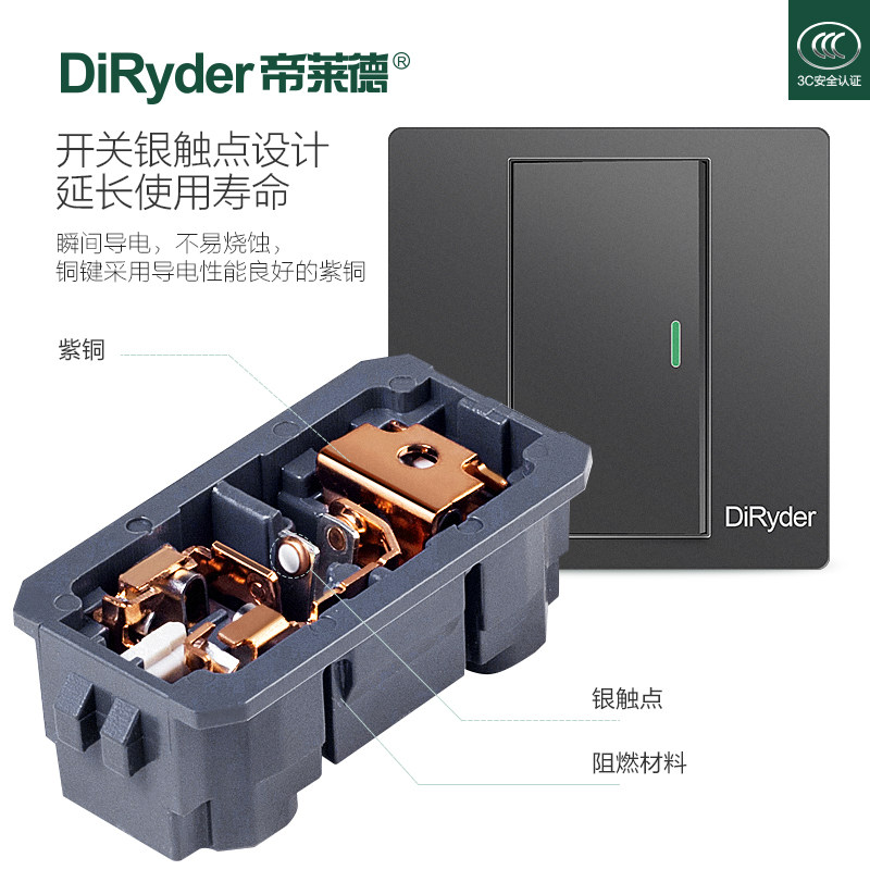 DiRyder Imperial Lederide A Double Cut Switch Space Grey 86 Type Panel Wall Concealed 2 United Home Power Outlet