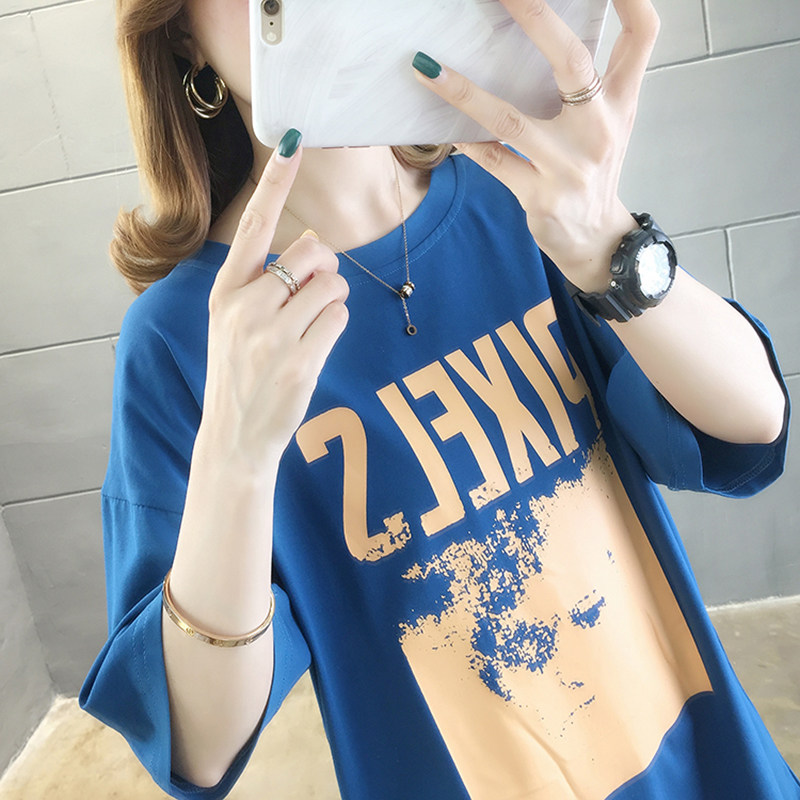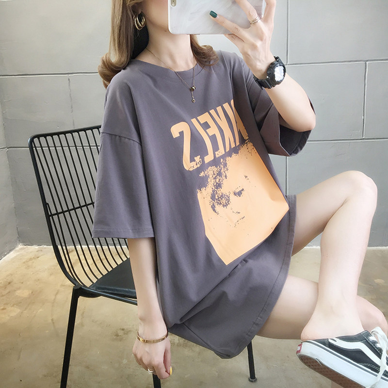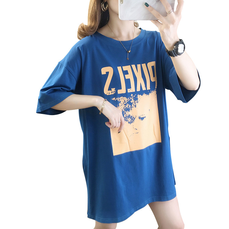 European station women's clothing 2021 summer new large size short-sleeved t-shirt women's medium and long version of fat mm cover belly thin top