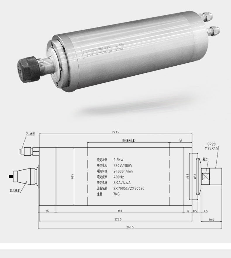 Han Qi 2 2KW Motor Front Stroke GDZ-23-1 Water Cooling 85 Diameter High Speed Round Engraving Machine Woodworking Advertising Electric Spindle