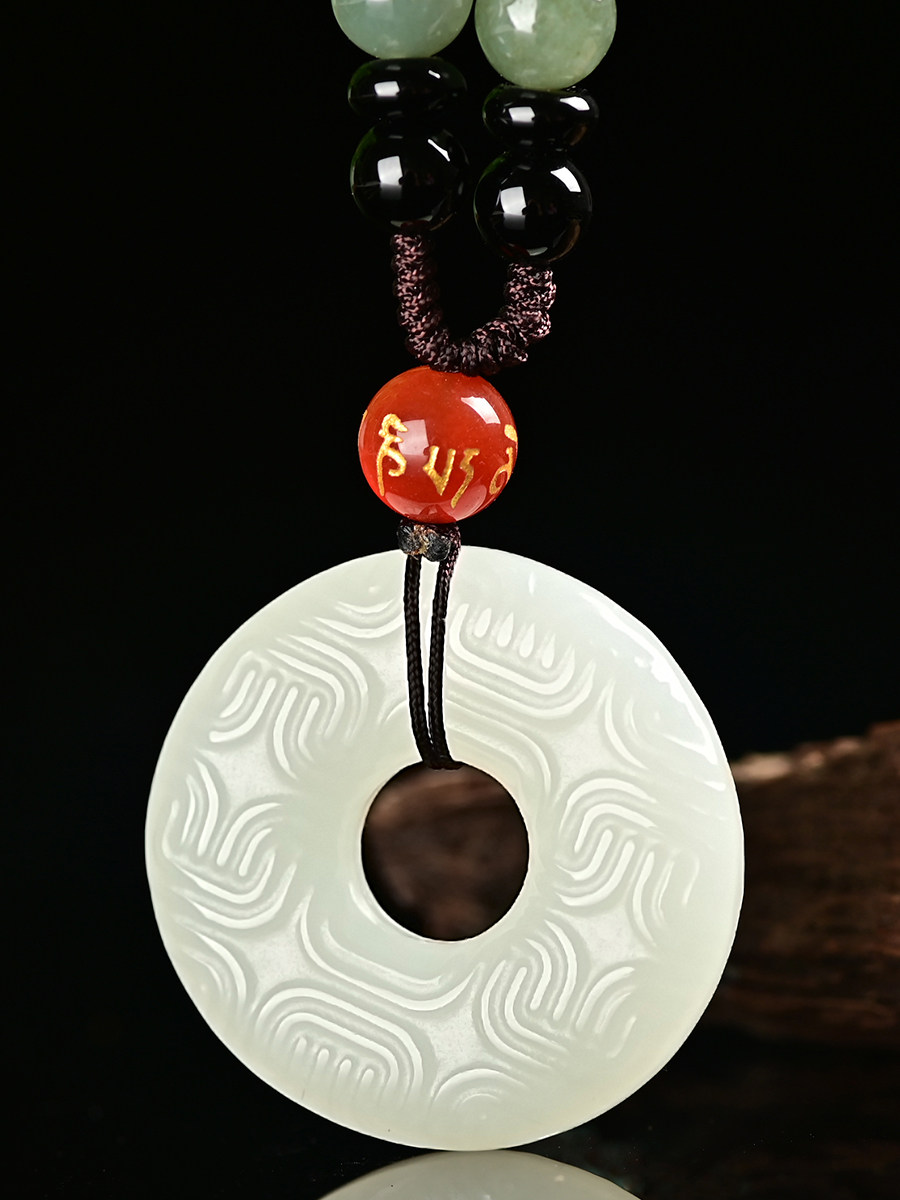 Six-character mantra safety buckle high-quality jade double-sided carving wealth and safety buckle high-quality jade double-sided carving wealth Pixiu safety buckle high-quality jade double-sided carving traditional safety buckle