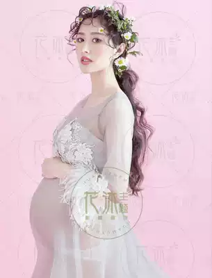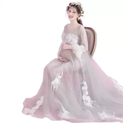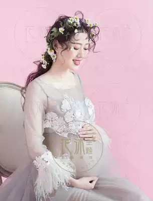 Huamu theme new pregnant women photo clothing photo studio photography lace flower feather mesh dress pregnant mommy