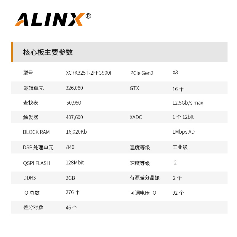 FPGA core board ALINX black gold XILINX Kintex7 4K PCIE Video fiber optic communication K7 industry