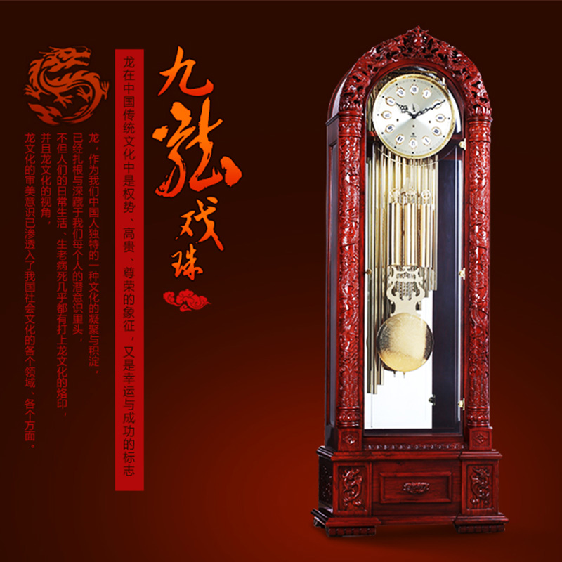 Barking Jiuyin Tube Landing Bell Living Room Eu Style Timepiece Solid Wood Clock Pendulum Clock Standing Bell Mechanical Villa Supermassive Bell
