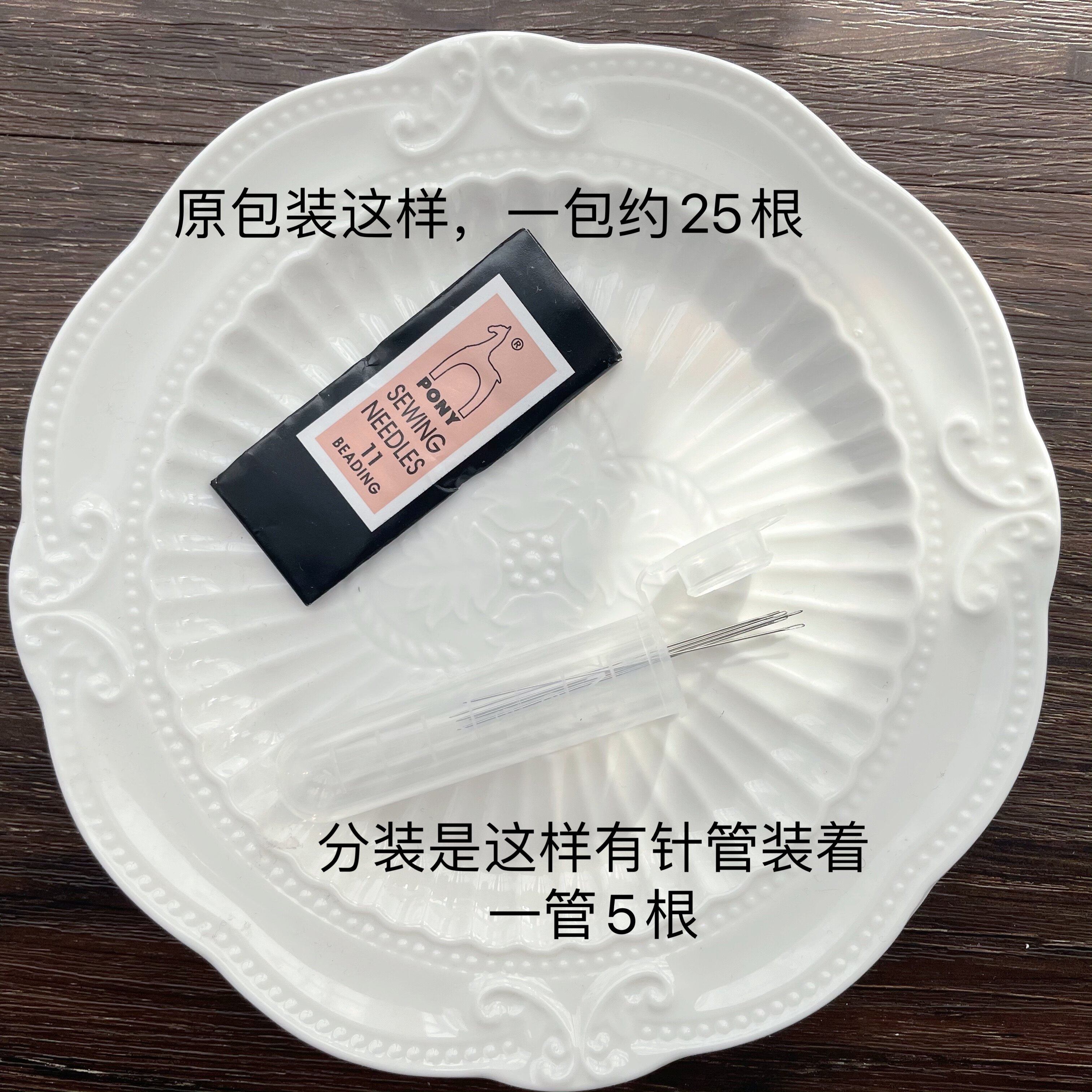 No. 11 beaded needles, a pack of about 25 pieces, divided into 5 pieces with needle tubes