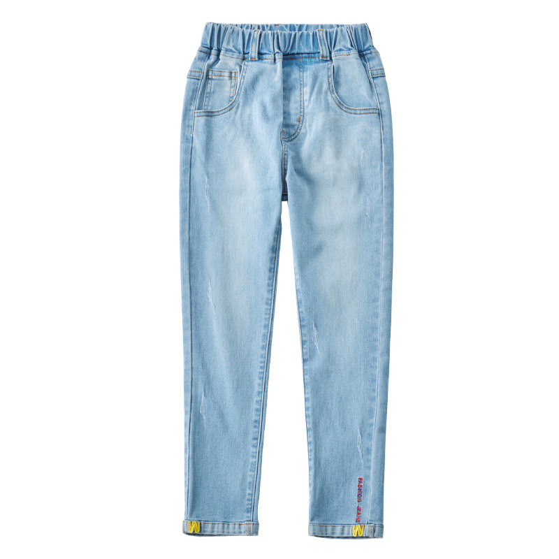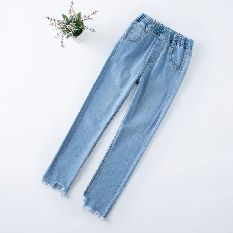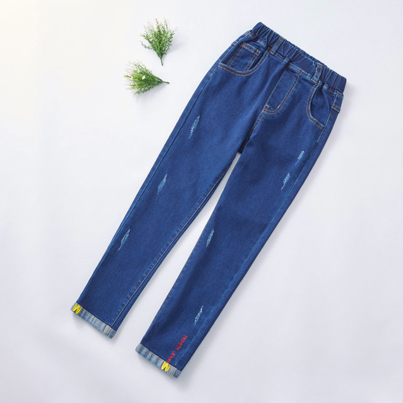 Girls' jeans 2022 autumn new spring and autumn long pants slim elastic medium and large children's wear children's pencil pants
