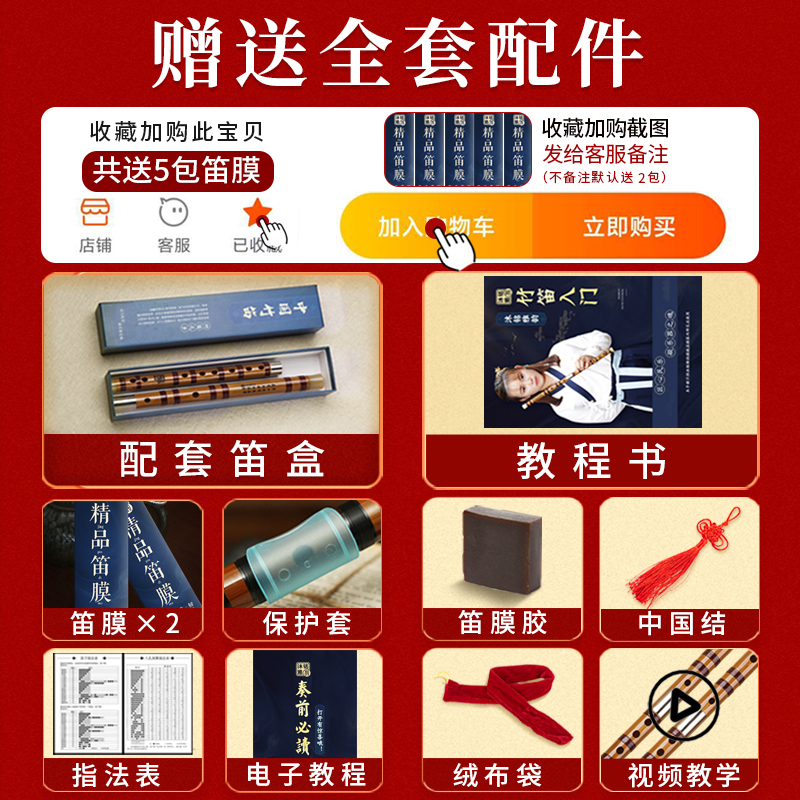 Flute Bamboo Flute Beginners Zero Foundation Children Students G Tune Refined Bitter Flute F Professional Playing Grade Ancient Wind Cross Jade Flute-Taobao