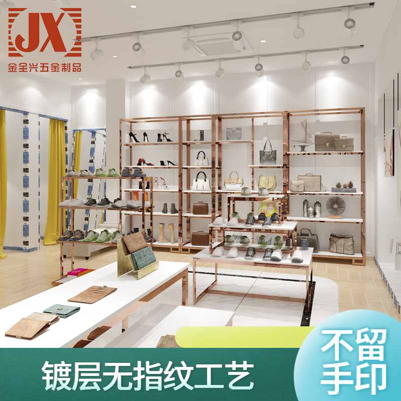 Upscale Stainless Steel Black Titanium Alloy Shoes Shop Rack rack Rack Cabinet Rose Gold Bag shelving shelving with wall on floor