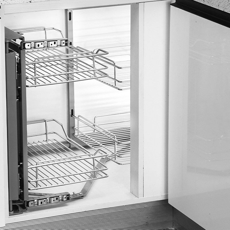 The Byron-Stainless Steel Kitchen?Car pulling blue shelve overall cupboard around corner left door open small monster corner pull basket