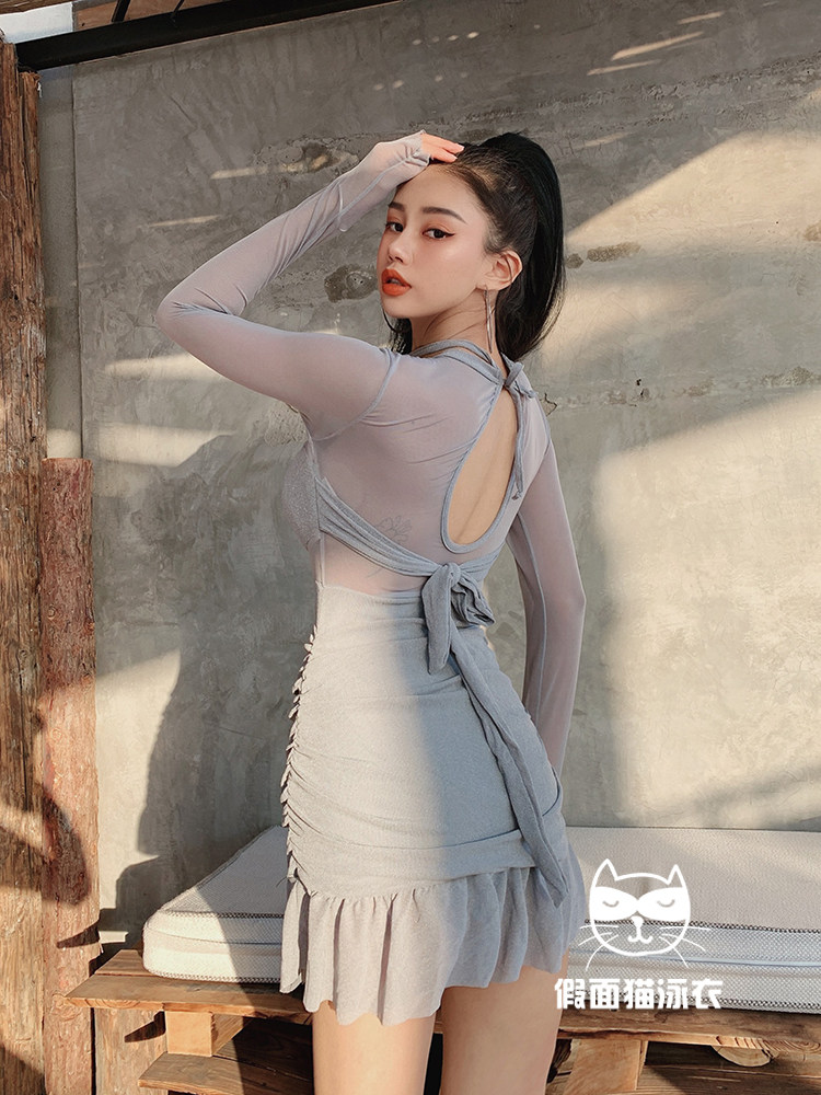 Masquerade Cat French Swimsuit Women's One-Piece Skirt Covering Belly Conservative Conservative Ins Style Long Sleeve Hot Spring Sexy Swimsuit
