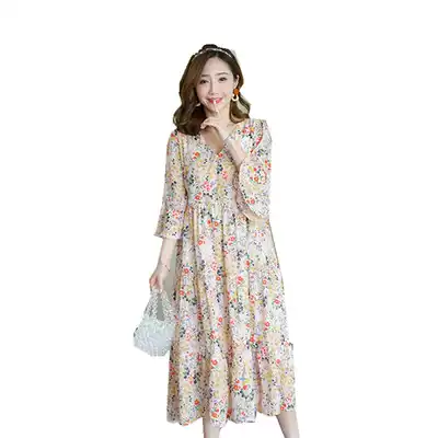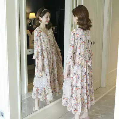 Foreign maternity dress large size maternity dress spring summer loose medium and long version of floral dress temperament 200kg skirt