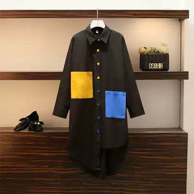 Chinese maternity dress spring and autumn spring dress tide hot mother personality dress long dress medium and long version of large size slim shirt skirt