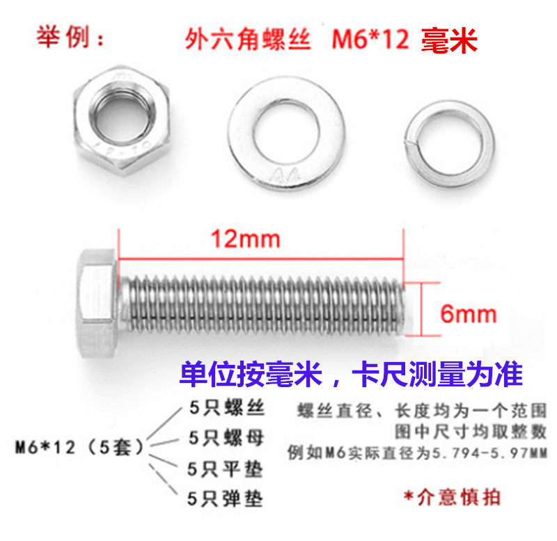 M6M8M10M12 hexagon bolt 304 stainless steel screw Nut set Bed screw Screw with cap