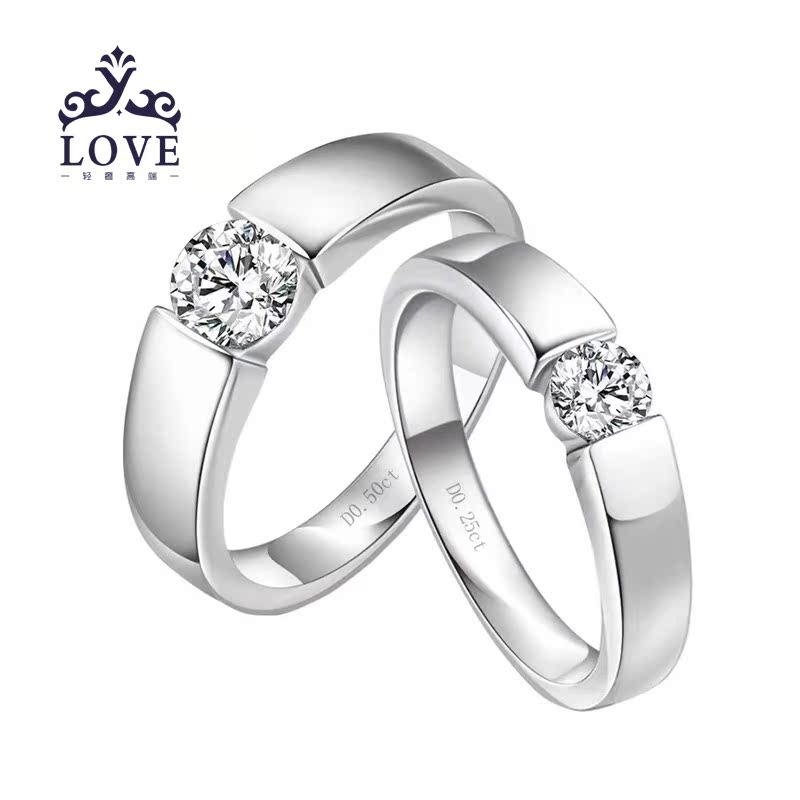New PT950 men's ring mosanstone diamond emulation diamond ring to brief wedding couple 18K white gold