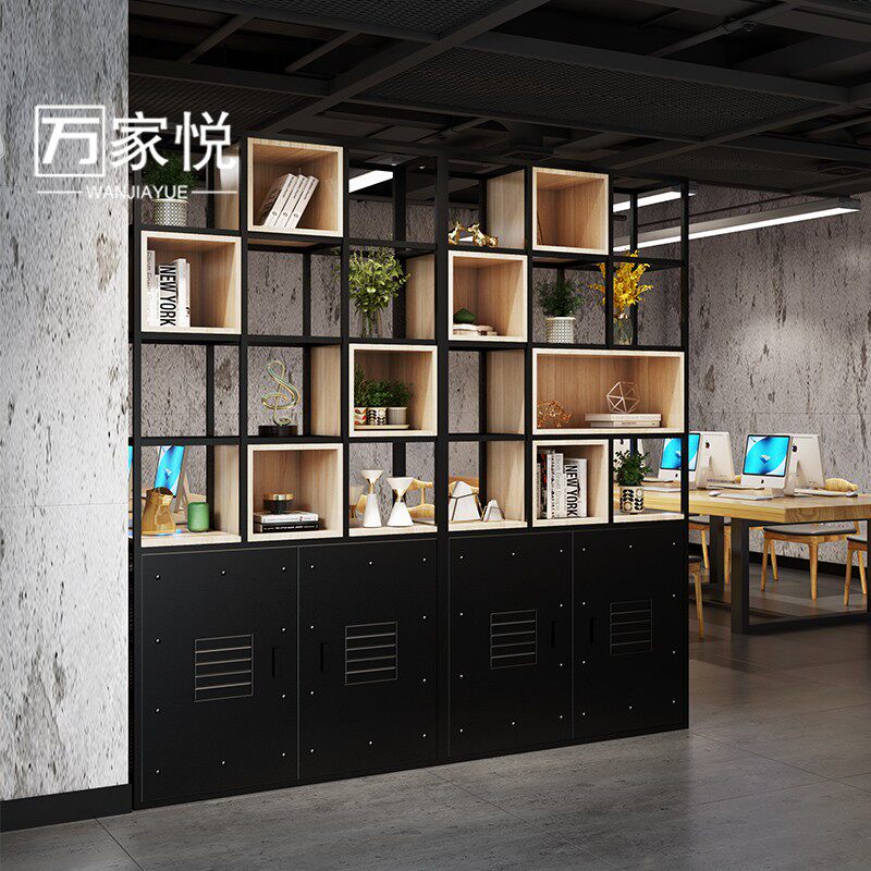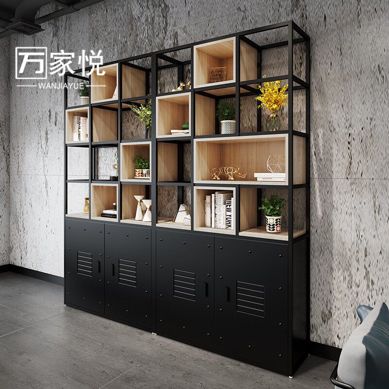 LOFT industrial style hollow wrought iron partition shelf office file cabinet bookcase bookshelf floor with cabinet