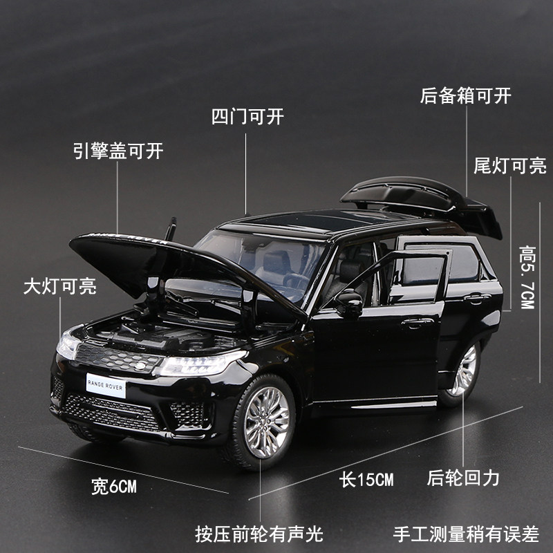Land Rover Range Rover Sport 1:32 alloy car model sound and light pull back boy toy car simulation car model ornaments