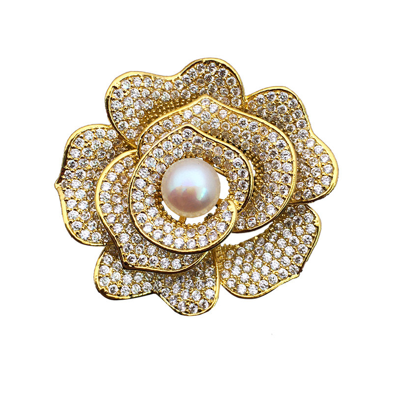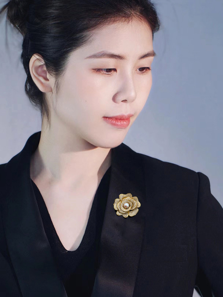 Natural pearl zircon rose floral brooch with upscale female chest flowers Don't pin Korea Luxurious Atmosphere Superior Sense Accessories