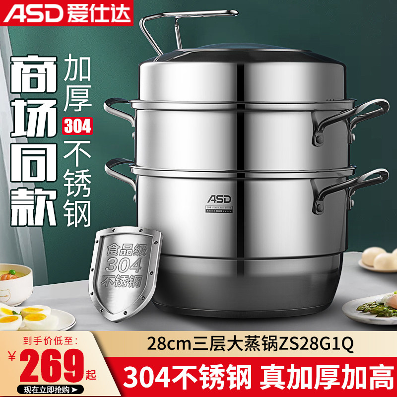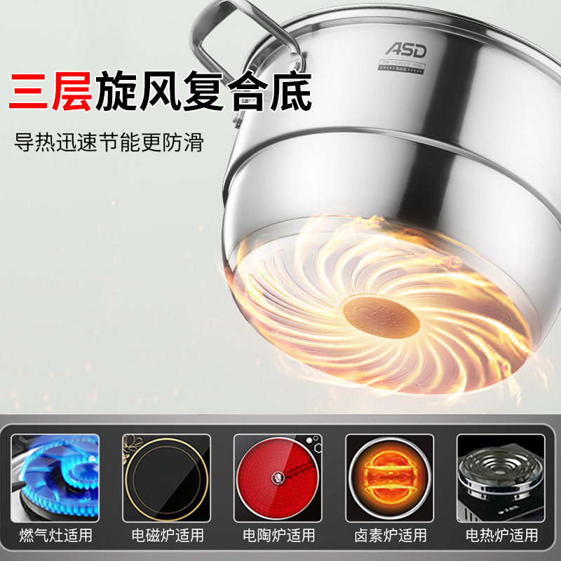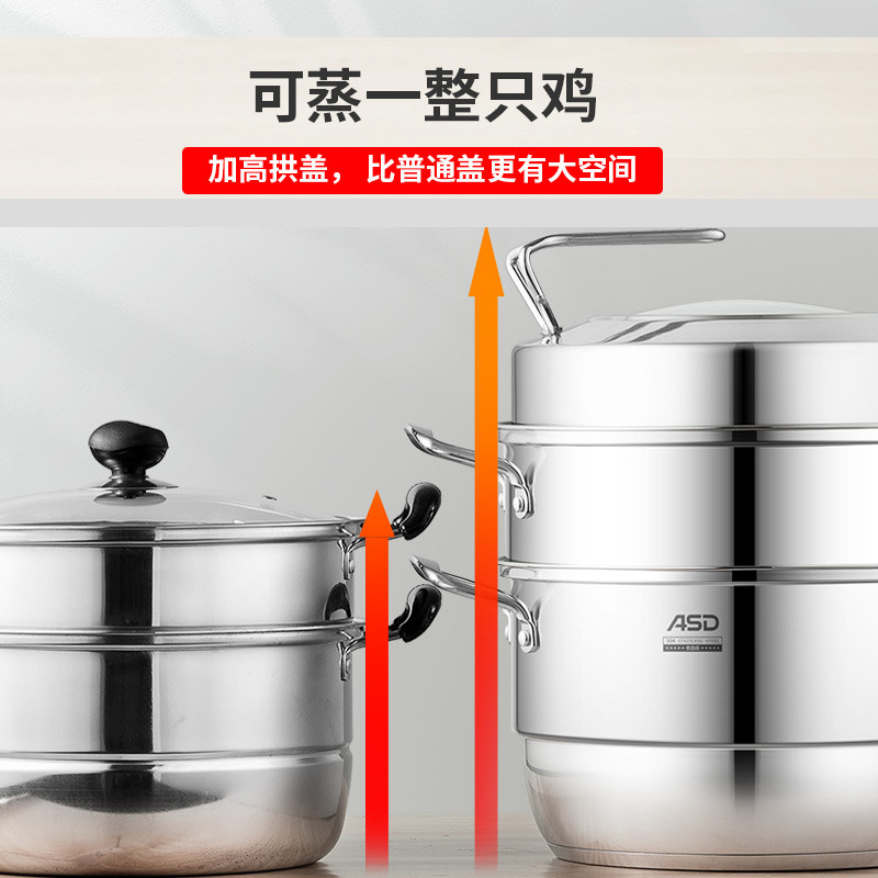 Ashida steamer home 304 stainless steel thickened large multi-three-layer gas stove induction cooker universal multi-functional