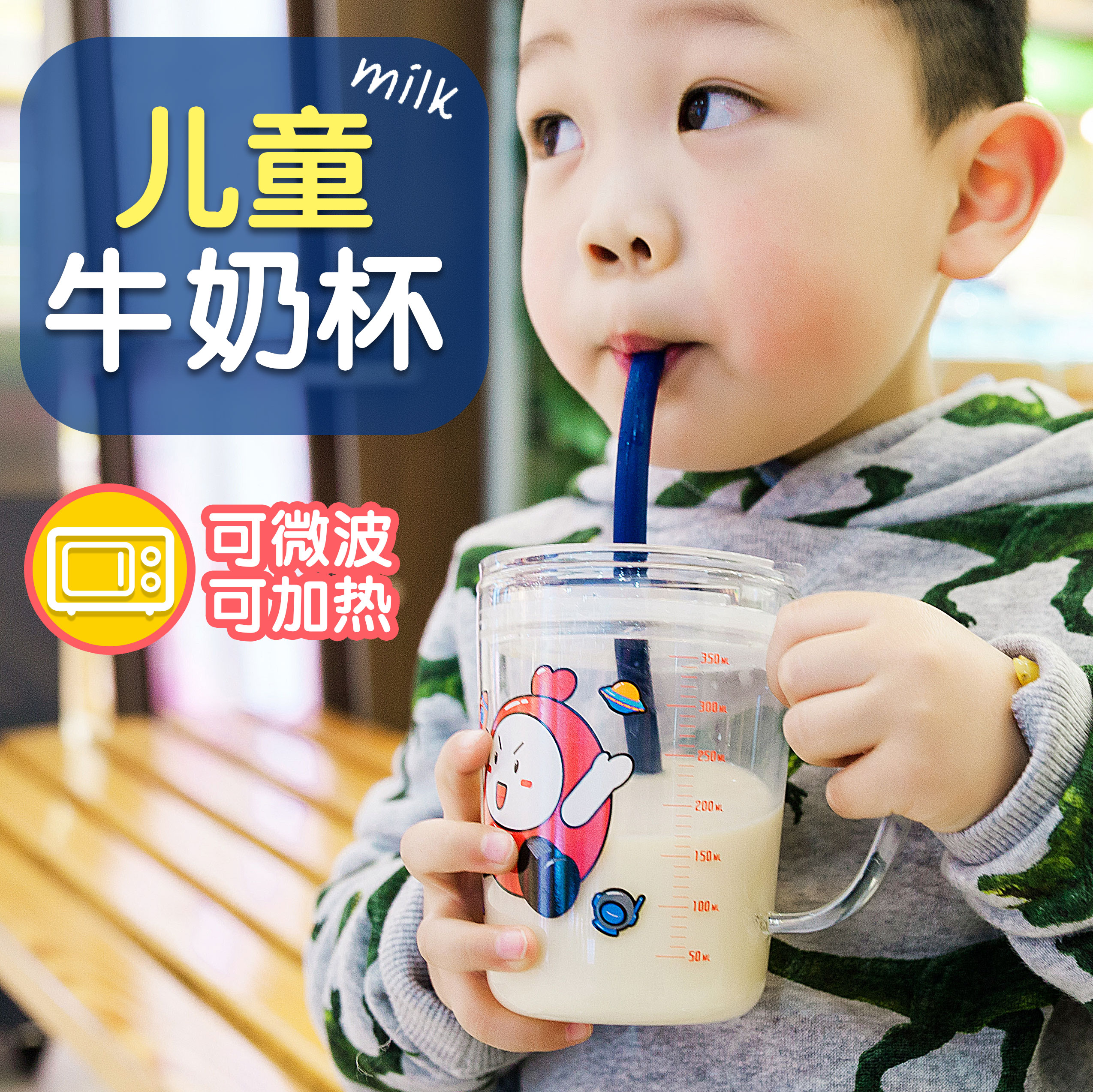Children's milk cup with scale baby drinking milk straw cup brewing milk powder special glass microwave can be heated
