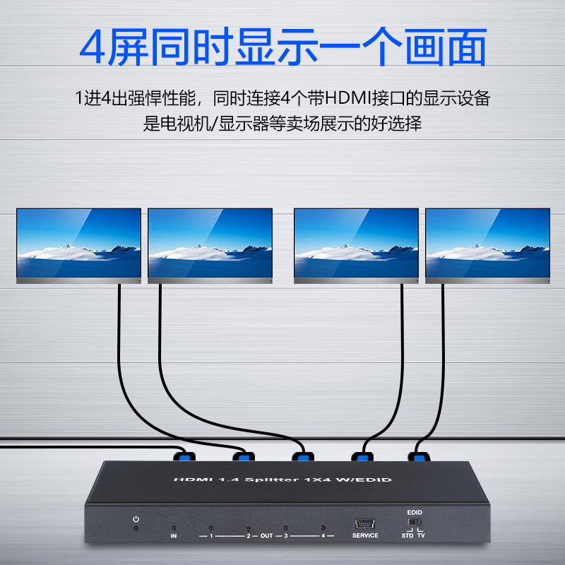 Emai's HDMI distributor 1 in 4 out HD 4K signal split screen into 4 computer split line monitoring 1 point 4