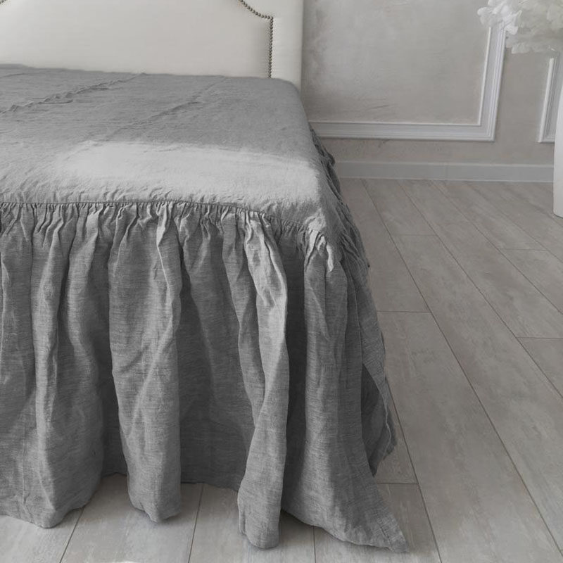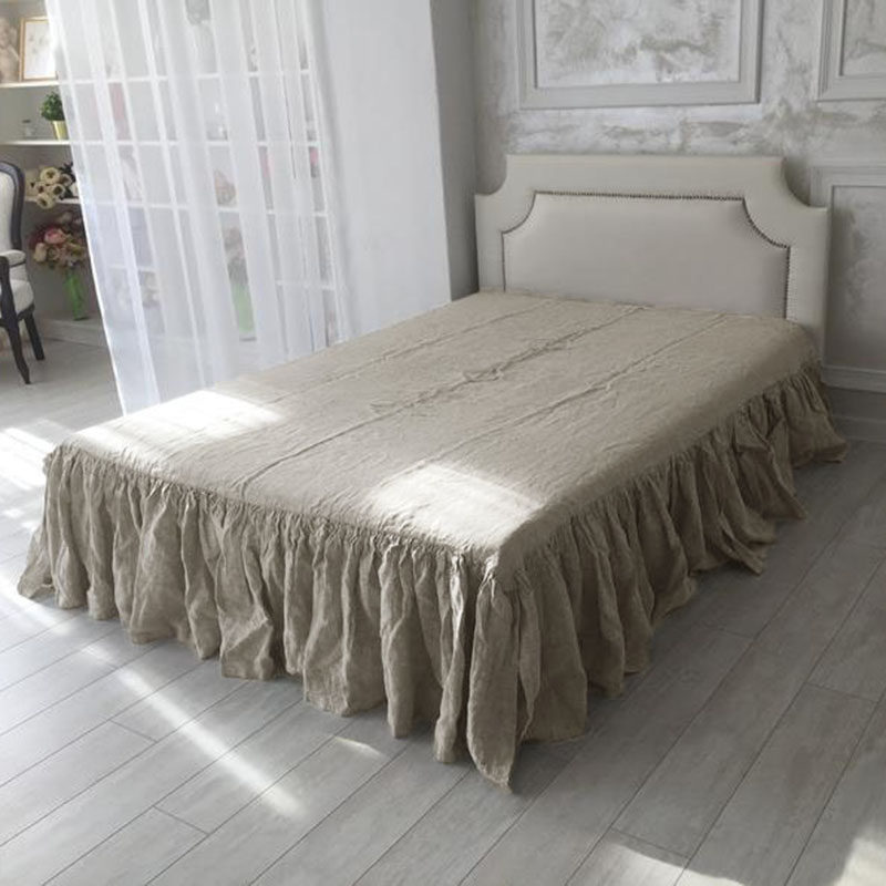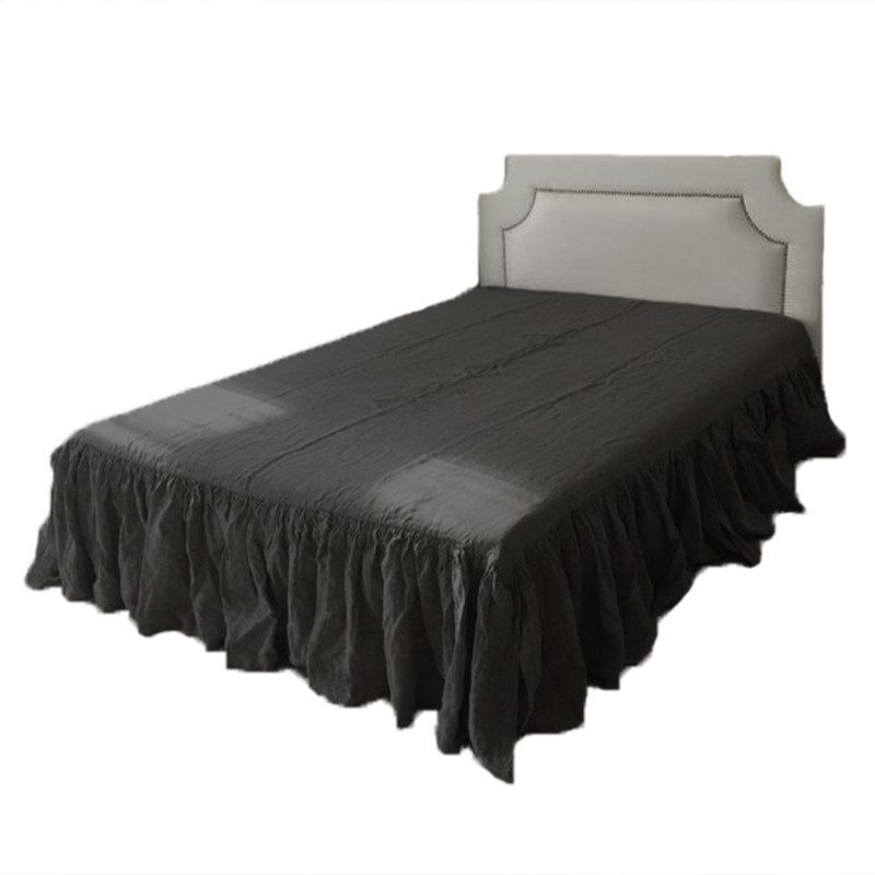 Natural linen washed solid color bed skirt ruffled bedspread skirt bed bag non-slip dust-proof bed sheet single piece