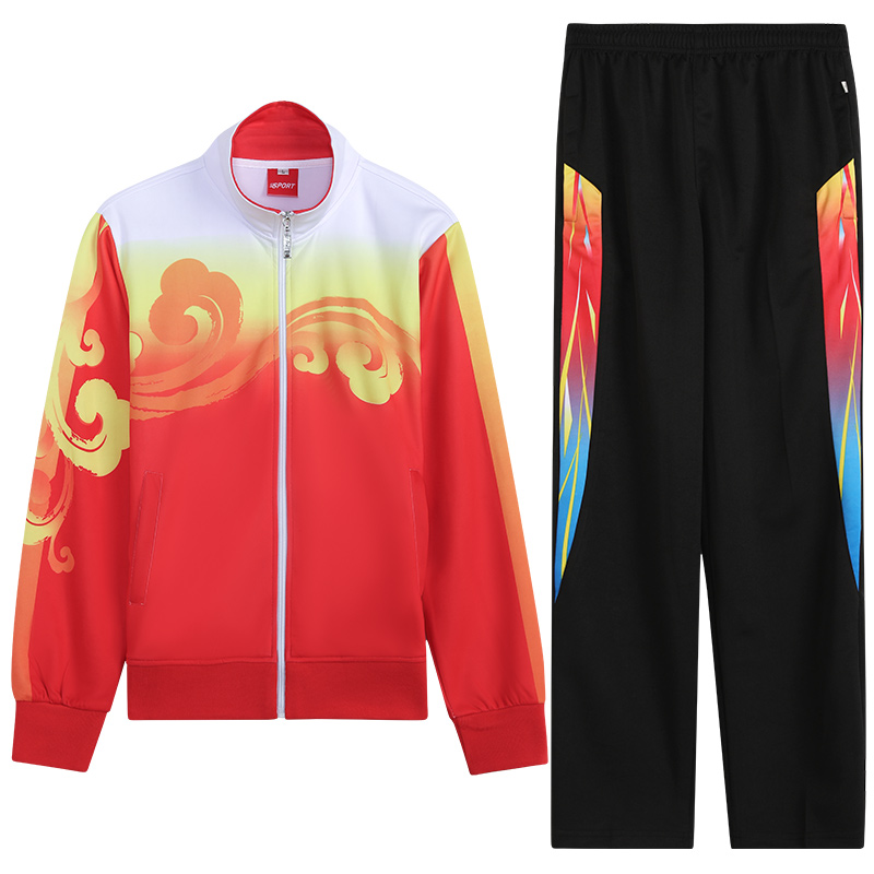 Cloud red coat printed black pants Cloud red coat printed white pants Cloud red coat white big red strips Cloud red coat Big red white pants Cloud red coat Cloud red coat Pure black