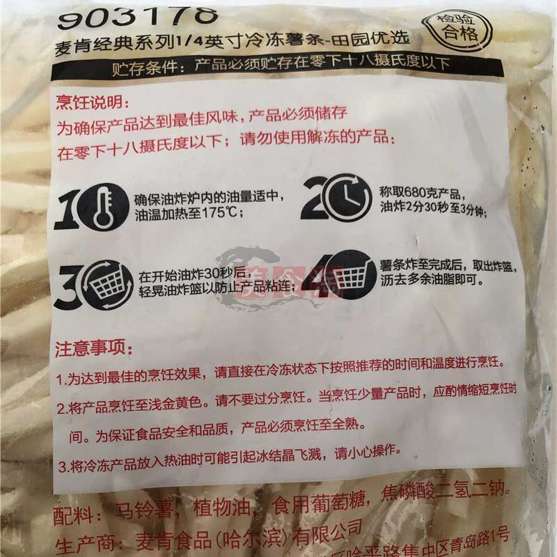 McCann fries 2kg * 6 packs bronze medal 1 4 fine fries 3 8 coarse fries raw material fried frozen semi-finished products