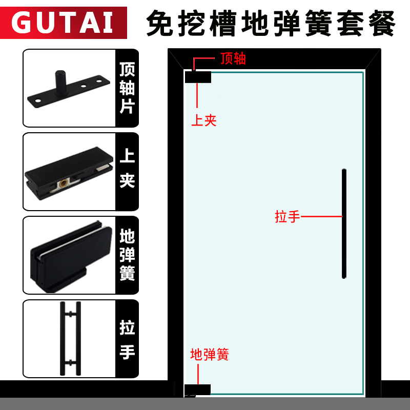 Black free dug tank ground spring package free of digging pit concealed place spring upper clip handle glass door accessories suit