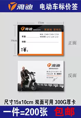Yadi electric car price brand electric bicycle Bicycle Electric car price tag card price card 200